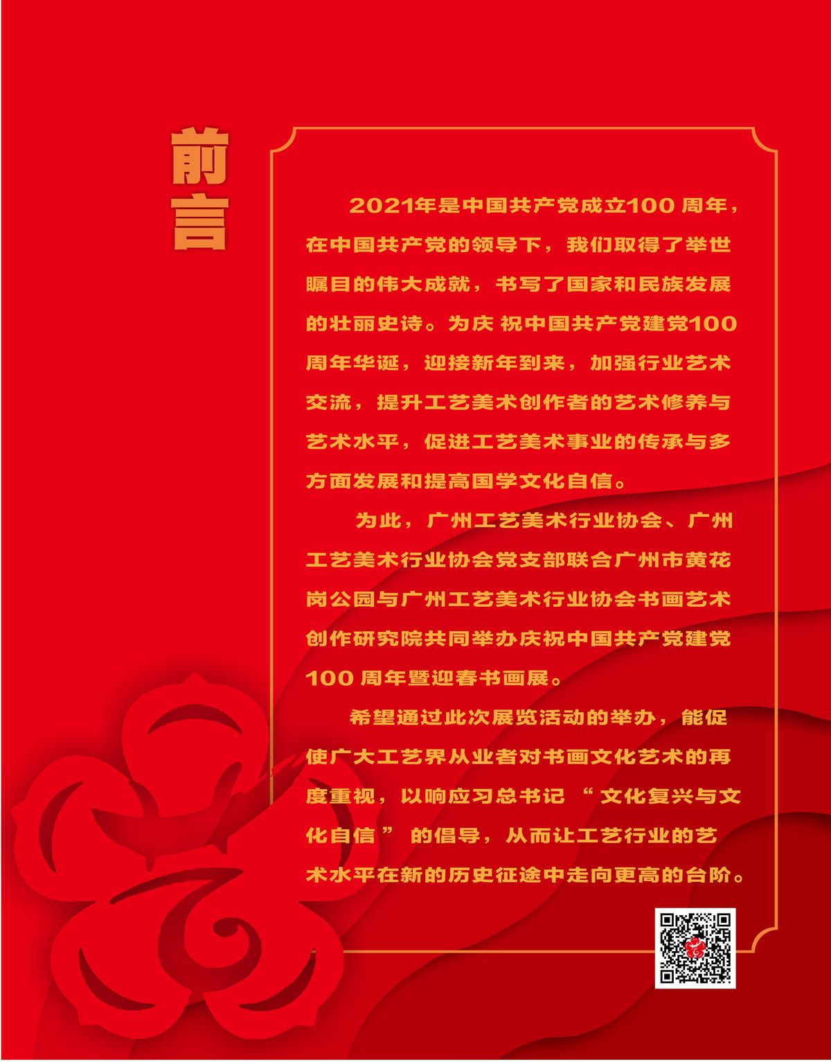 为庆祝中国共产党成立100周年,1月26日上午,由广州工艺美术行业协会、广州工艺美术行业协会党支部、广州市黄花岗公园共同主办,广州工艺美术行业协会书画艺术创作研究院协办的“百年梦想