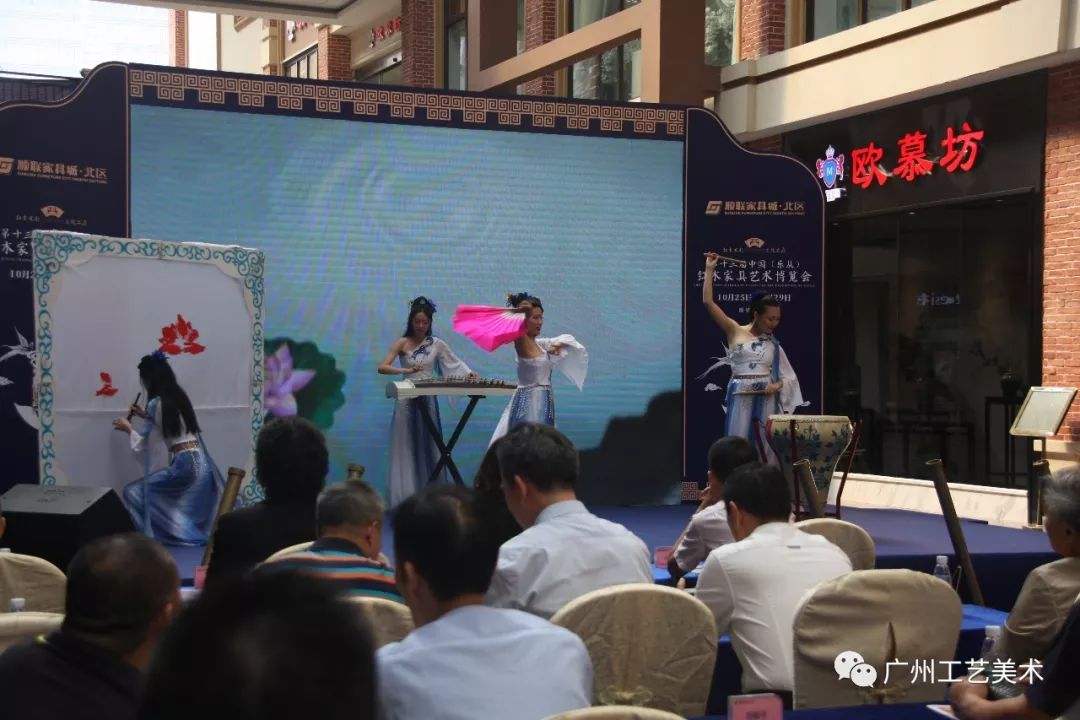 开幕式当天,省工信厅生产服务业处副处长全在勤、广东省家具协会会长王克、乐从镇经济和科技促进局常务副局长梁沛恒、乐从家具城商会副会长顺联集团总裁陈淑瑶、广东收藏家协会副主席、广东收藏家协会家具专业委员会主任黄大钊、广州工艺美术行业协会联合党支部书记、广州市工艺美术大师联谊会会长洪维庆、广东省工艺美术大师、广东省工艺美术协会副会长巢烜宝、佛山市顺德区新乐从家具城有限公司总经理胡柯作为主礼嘉宾上台主持了启动仪式。